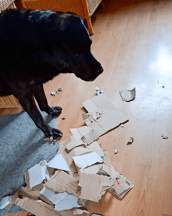 - Wenn Paket-Post kommt, darf er den Karton zerkleinern, sofern ich ihn nicht brauche. Quasi mein Reißwölfchen auf vier Pfoten. Diese Aufgabe erfüllt er mit großer Freude.
