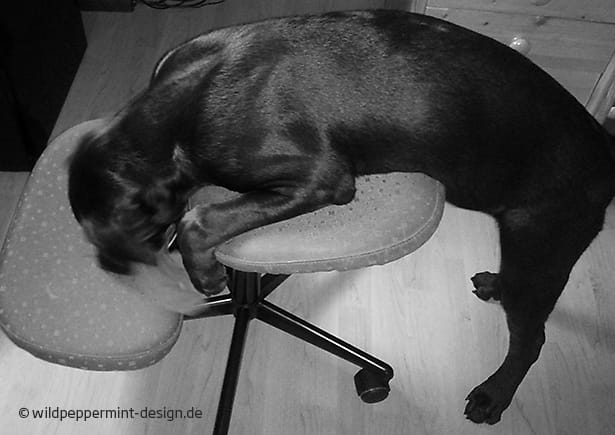 Natürlich ist er nicht einfach nur ein Hund. Oder gar ein nettes Büroaccessoire. Niemals. Er gibt den Tagesplan vor und das ist gut so. Er ist genau genommen eine Art „Mädchen für alles“. Er ist Feelgood-Manager, Pausen-Coach und Fitness-Trainer und damit ist er für mich der beste Mitarbeiter überhaupt. Okay, er ist der auch der einzige. 😉