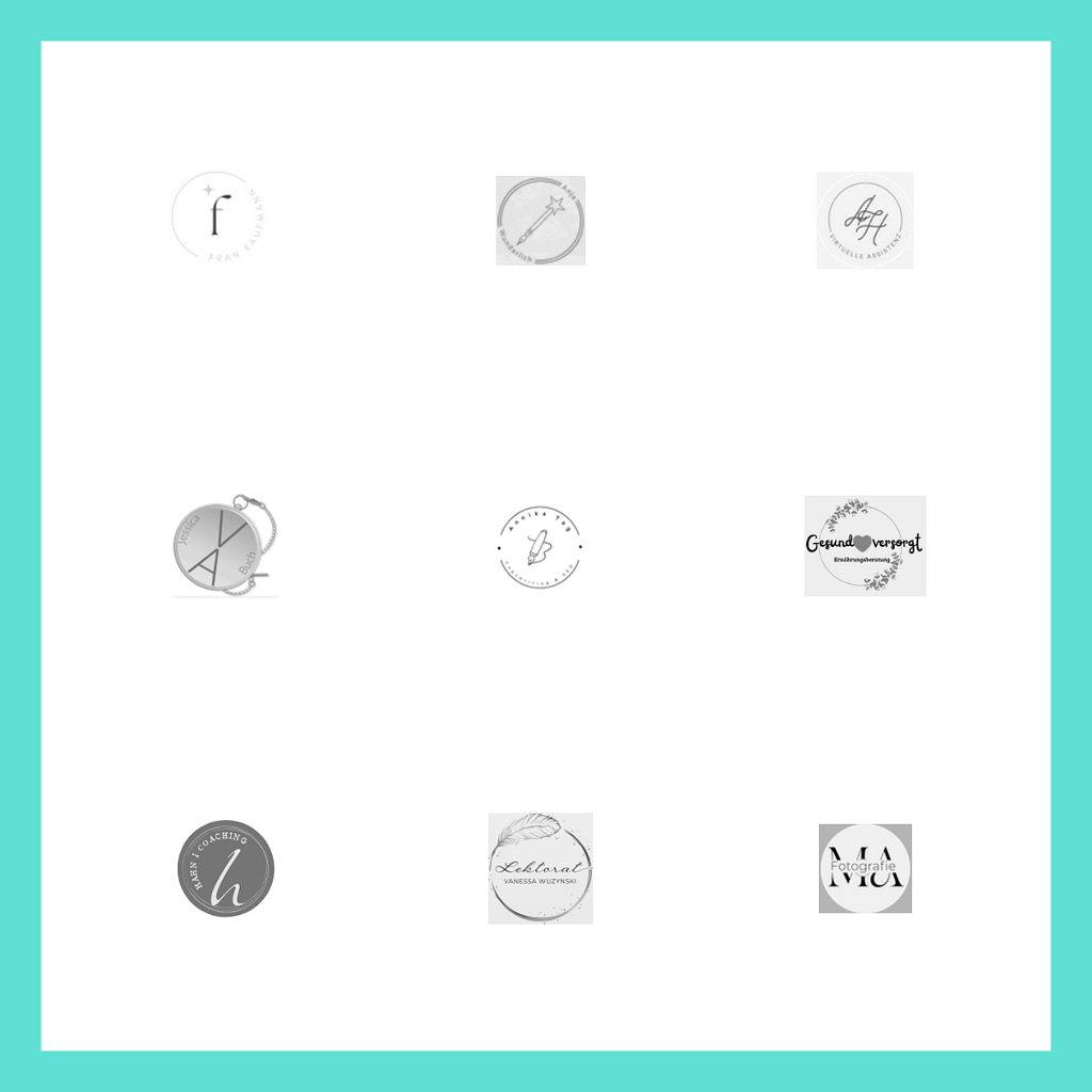 Auch, wenn Kreis-Logos offenbar bei einigen Apps wie Canva als ganz hip und professionell dargestellt werden, lass es lieber. Sieh dir mal diese Logos an. Und, fällt dir etwas auf? Genau, sie sehen mehr oder weniger alle gleich und nichtssagend aus. Schade. – Ich habe sie bewusst in schwarz-weiß dargestellt, weil so die Austauschbarkeit noch deutlicher wird. Und, was denkst du?